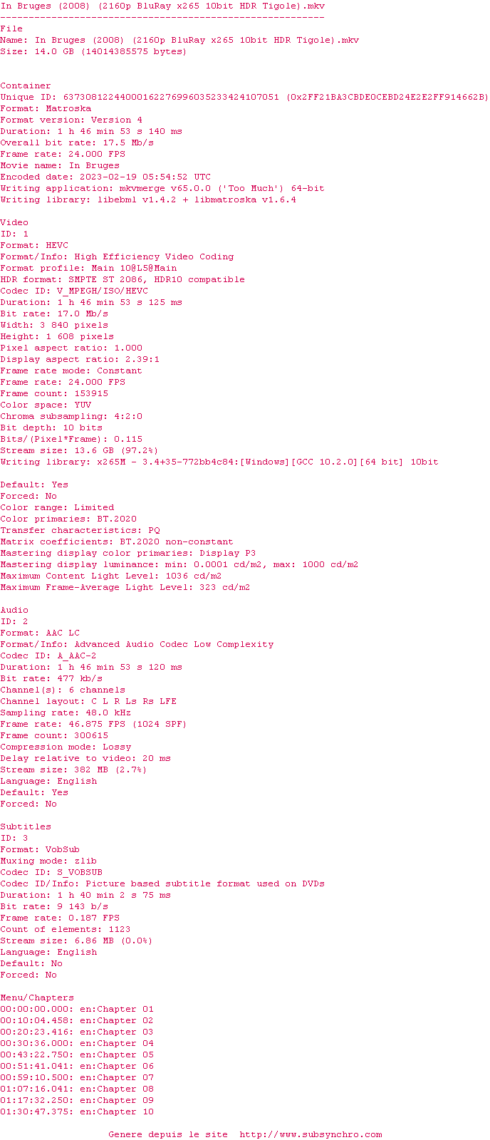 Voir le nfo de la release Somewhere.In.Time.UHD.BluRay.2160p.HDR10.DV.HEVC.DTS-HD.MA.2.0.x265-E