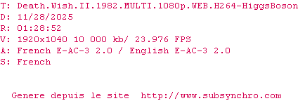Voir le nfo de la release Death.Wish.II.1982.MULTI.1080p.WEB.H264-HiggsBoson