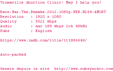 Voir le nfo de la release Race.War.The.Remake.2012.1080p.WEB.H264-AMORT