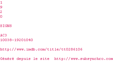 Voir le nfo de la release Signs.2002.1080p.Bluray.x264-1920