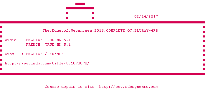 Voir le nfo de la release Jour.J.2017.FRENCH.COMPLETE.BLURAY-4FR
