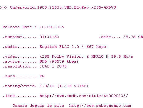 Voir le nfo de la release Tornado.2025.2160p.UHD.BluRay.x265-4KDVS