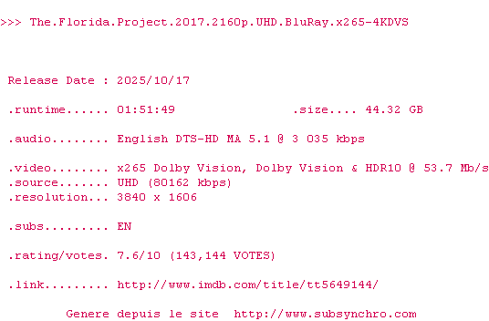 Voir le nfo de la release Lilo.And.Stitch.2025.COMPLETE.UHD.BLURAY-4KDVS