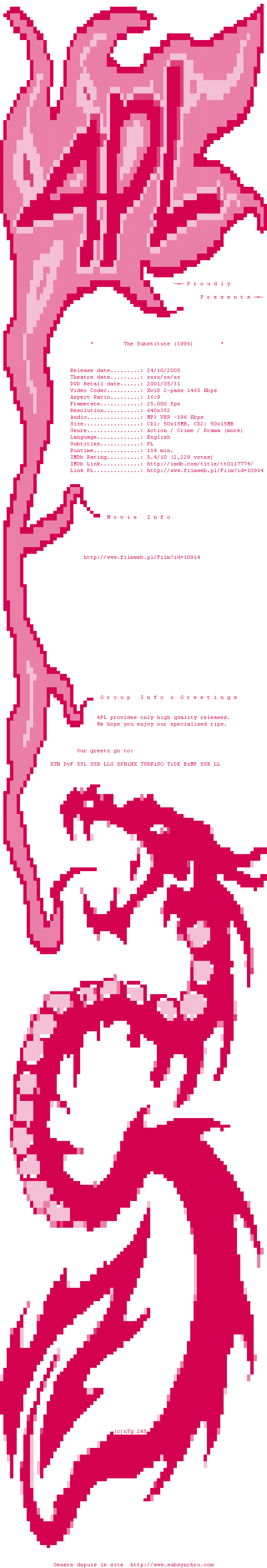 Voir le nfo de la release The.Substitute.1996.iNT.DVDRiP.XviD-4PL