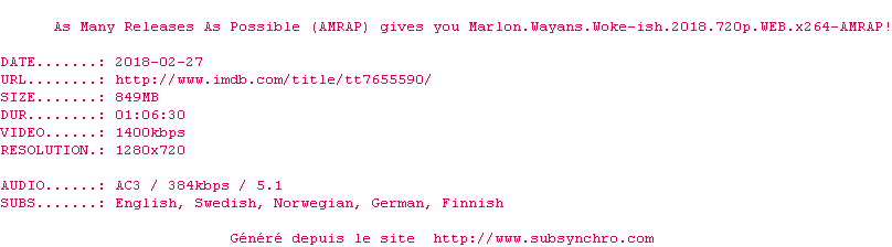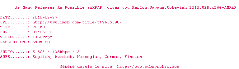 Voir le nfo de la release Marlon.Wayans.Woke-ish.2018.720p.WEB.x264-AMRAP