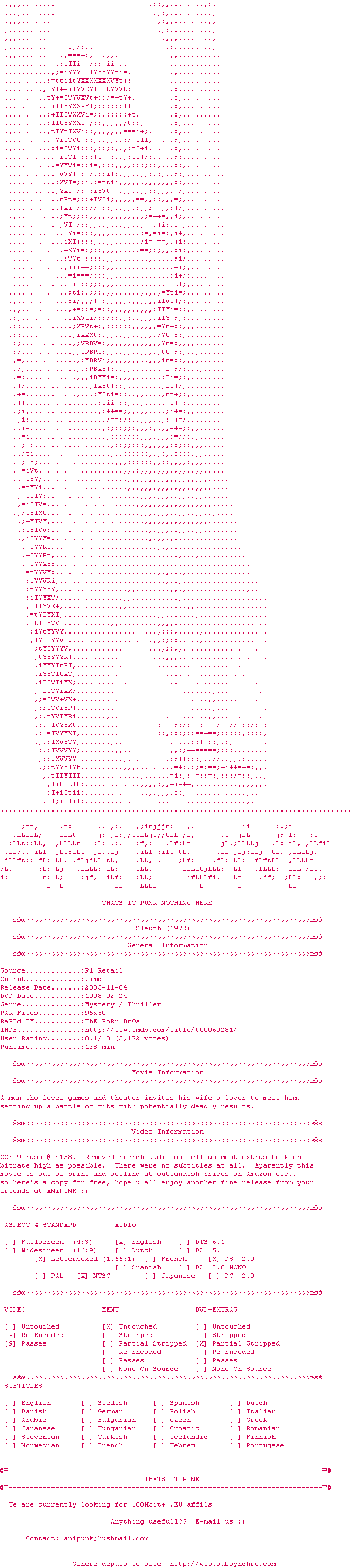 Voir le nfo de la release Sleuth.1972.iNT.NTSC.DVDR-ANiPUNK