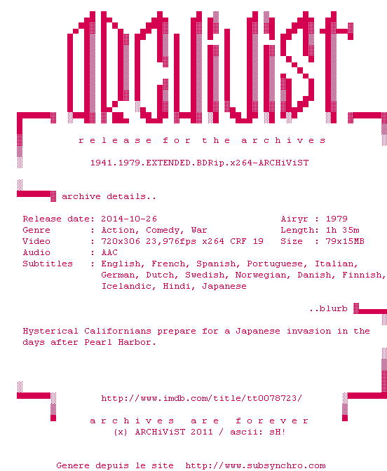 Voir le nfo de la release Escape.from.Tomorrow.2013.PROPER.LIMITED.BDRip.x264-ARCHiViST