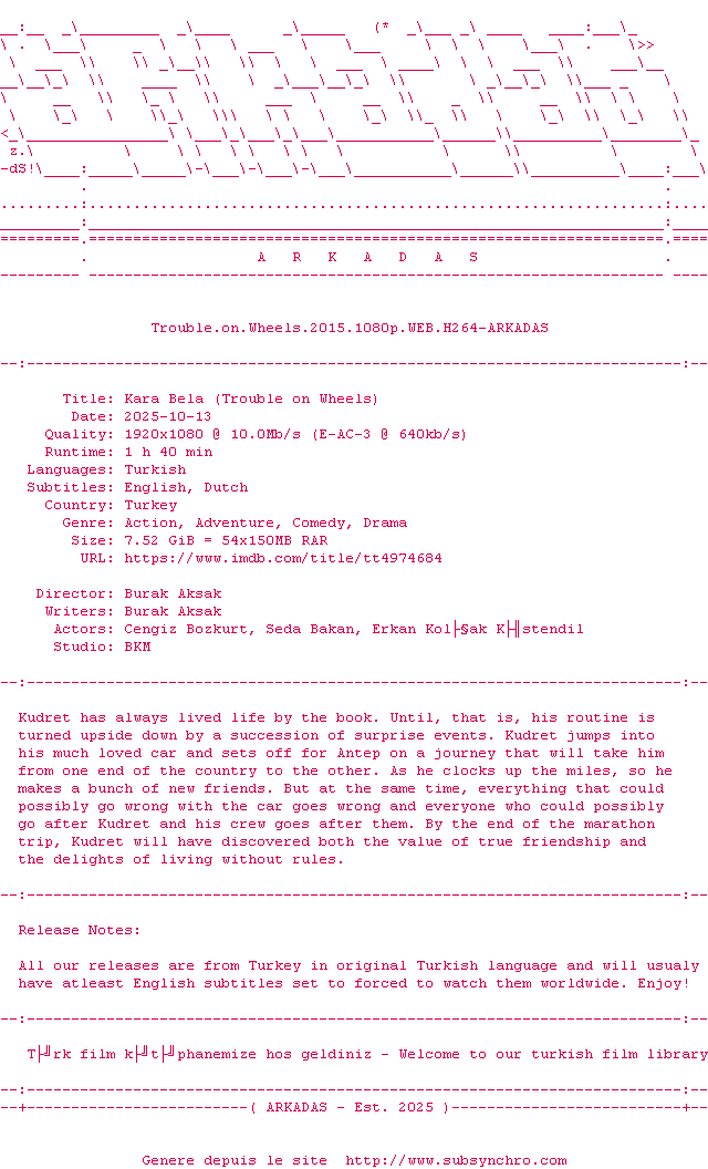 Voir le nfo de la release Trouble.On.Wheels.2015.1080p.WEB.H264-ARKADAS