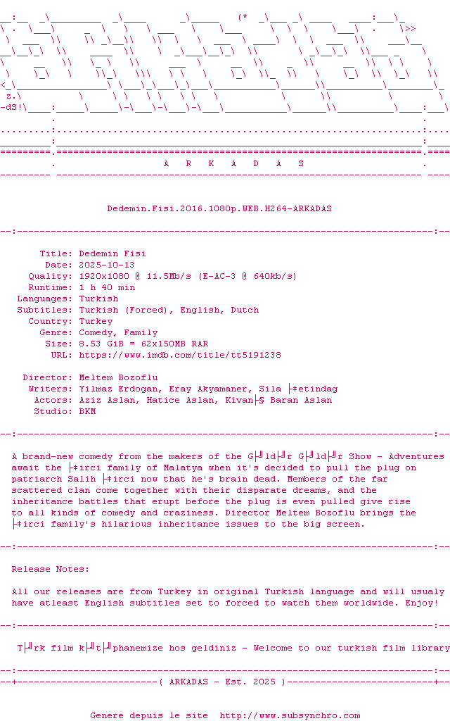 Voir le nfo de la release Dedemin.Fisi.2016.1080p.WEB.H264-ARKADAS