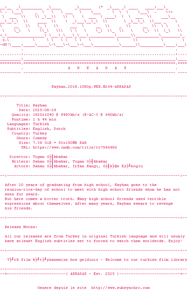 Voir le nfo de la release Kayhan.2018.1080p.WEB.H264-ARKADAS