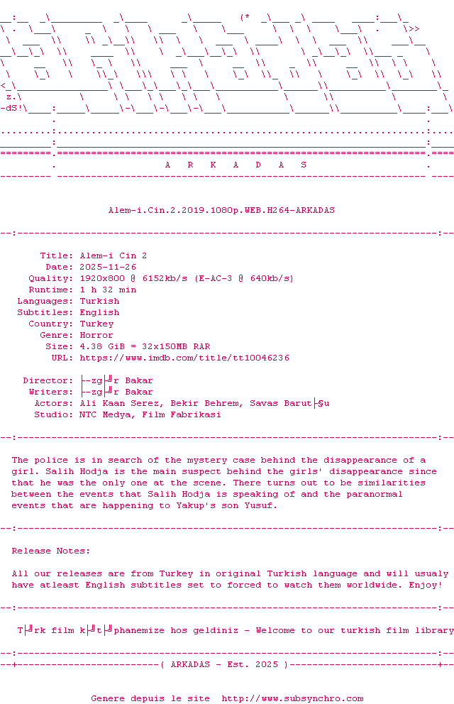 Voir le nfo de la release Alem-i.Cin.2.2019.1080p.WEB.H264-ARKADAS