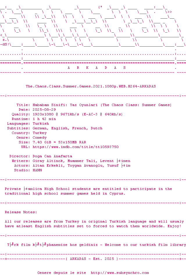 Voir le nfo de la release The.Chaos.Class.Summer.Games.2021.1080p.WEB.H264-ARKADAS