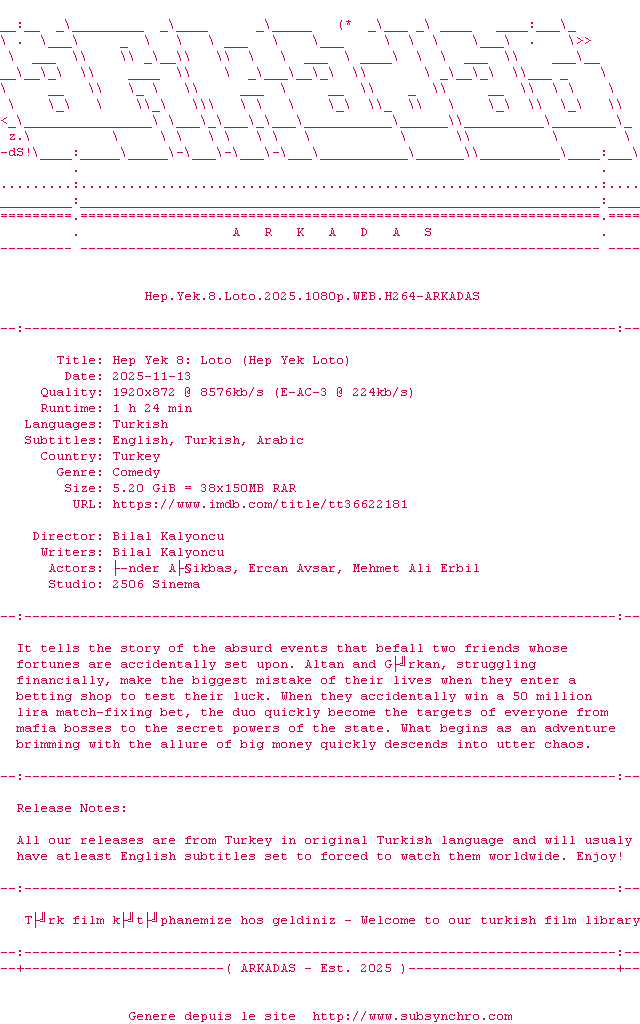 Voir le nfo de la release Hep.Yek.8.Loto.2025.1080p.WEB.H264-ARKADAS