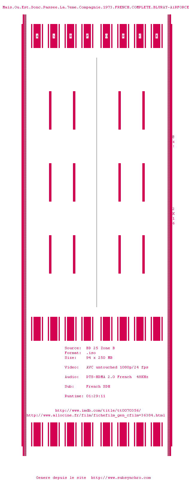 Voir le nfo de la release Mais.Ou.Est.Donc.Passee.La.7eme.Compagnie.1973.FRENCH.COMPLETE.BLURAY-AiRFORCE