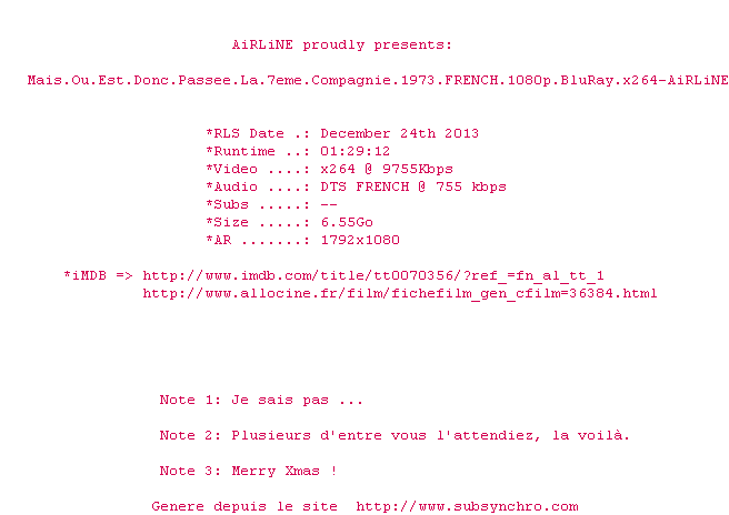 Voir le nfo de la release Airport.77.1977.MULTi.1080p.BluRay.x264-AiRLiNE