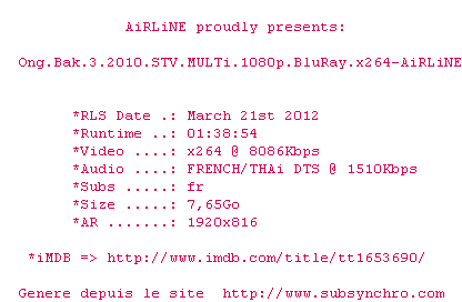 Voir le nfo de la release Rush.Hour.3.2007.MULTi.1080p.BluRay.x264-AiRLiNE
