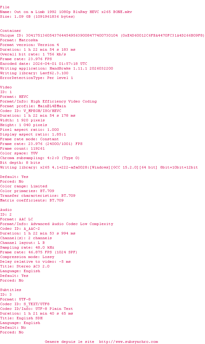 Voir le nfo de la release The.Substitute.1996.REMASTERED.1080p.BluRay.HEVC.x265.5.1-BONE