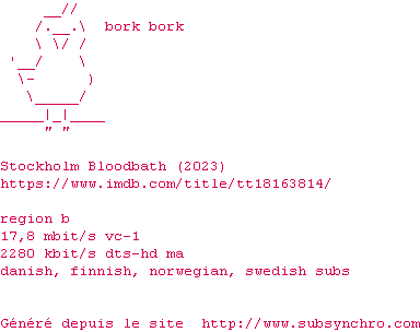 Voir le nfo de la release Stockholm.Bloodbath.2023.COMPLETE.BLURAY-BORK