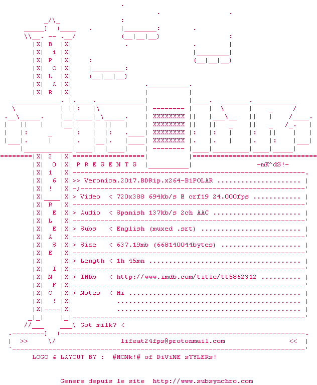 Voir le nfo de la release When.Angels.Sleep.2018.1080p.BluRay.x264-BiPOLAR