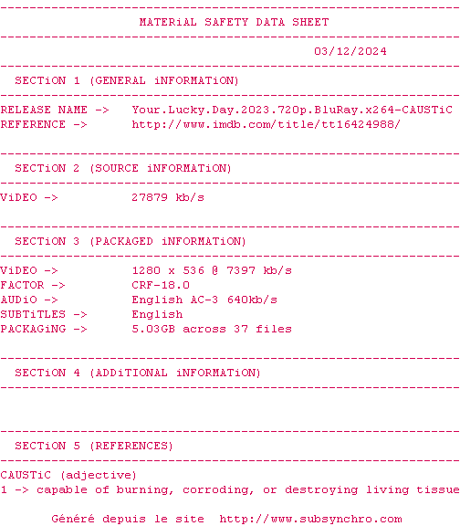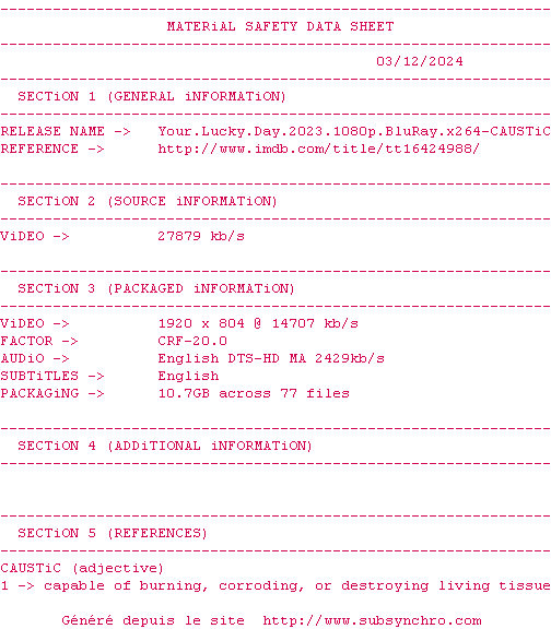 Voir le nfo de la release Your.Lucky.Day.2023.BDRip.x264-CAUSTiC