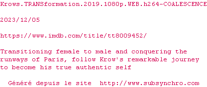 Voir le nfo de la release Krows.TRANSformation.2019.1080p.WEB.H264-COALESCENCE