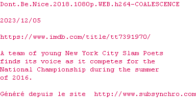Voir le nfo de la release Dont.Be.Nice.2018.1080p.WEB.H264-COALESCENCE
