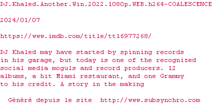 Voir le nfo de la release DJ.Khaled.Another.Win.2022.1080p.WEB.H264-COALESCENCE