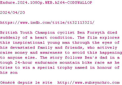 Voir le nfo de la release Endure.2024.1080p.WEB.H264-CODSWALLOP