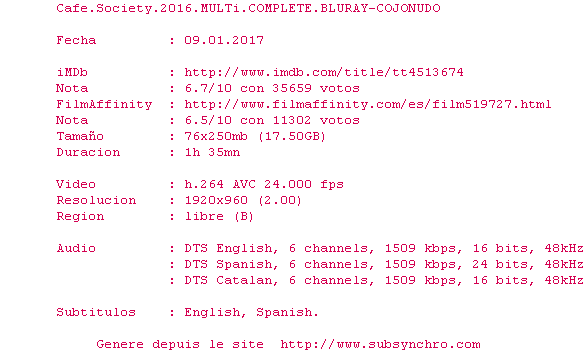 Voir le nfo de la release Cafe.Society.2016.MULTi.COMPLETE.BLURAY-COJONUDO