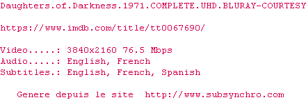 Voir le nfo de la release Daughters.Of.Darkness.1971.COMPLETE.UHD.BLURAY-COURTESY
