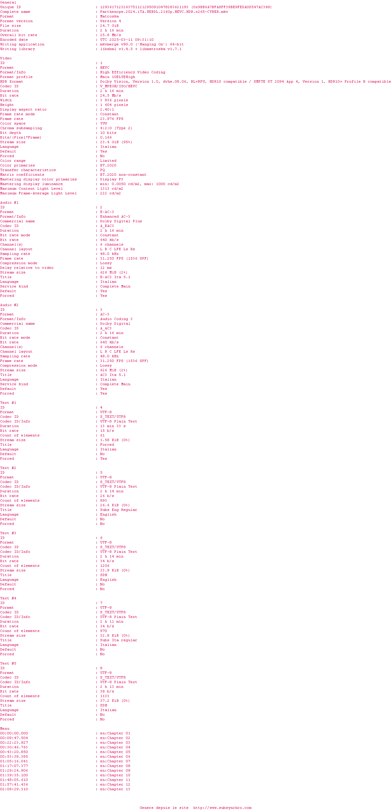 Voir le nfo de la release Parthenope.2024.ITA.WEBDL.2160p.HEVC.HDR.x265-CYBER