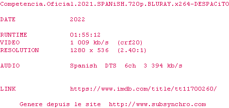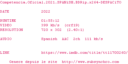 Voir le nfo de la release Competencia.Oficial.2021.SPANiSH.BDRip.x264-DESPACiTO