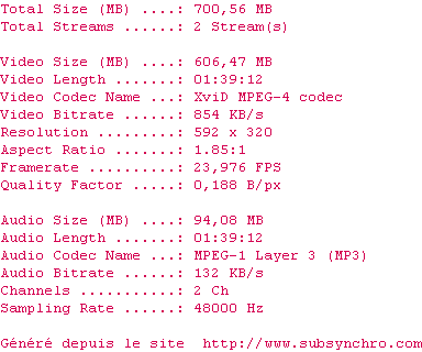 Voir le nfo de la release A.Man.Apart.DVDRiP.XViD-DEiTY