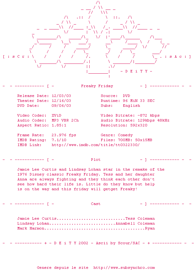 Voir le nfo de la release Confessions.Of.A.Teenage.Drama.Queen.2004.DVDRiP.XviD-DEiTY