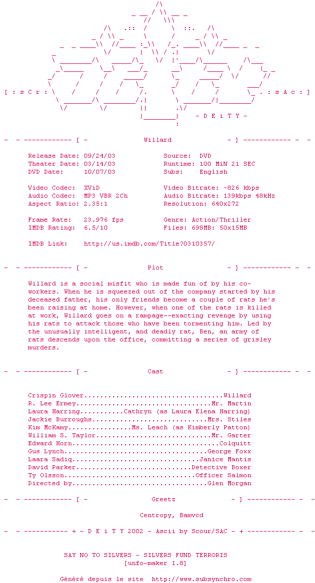 Voir le nfo de la release The.Life.Aquatic.DVDRiP.XViD-DEiTY