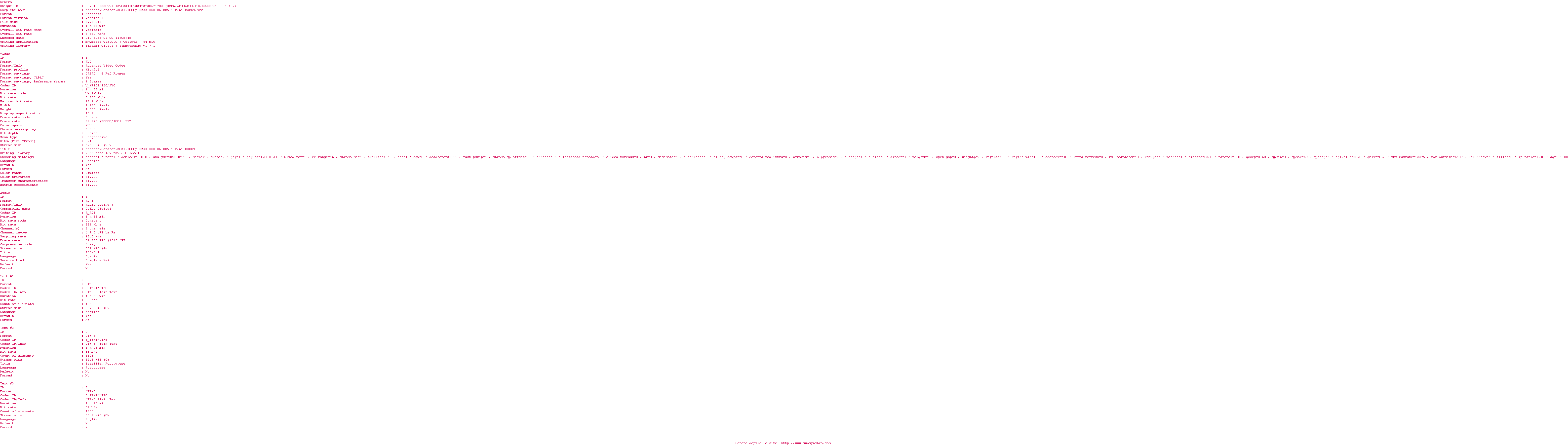 Voir le nfo de la release Errante.Corazon.2021.1080p.HMAX.WEB-DL.DD5.1.x264-DODEN