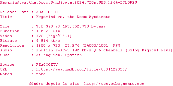 Voir le nfo de la release Megamind.Vs.The.Doom.Syndicate.2024.720p.WEB.H264-DOLORES