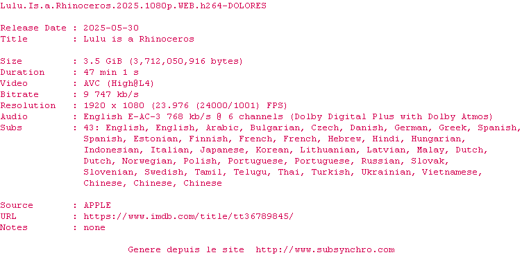 Voir le nfo de la release The.Velveteen.Rabbit.2023.2160p.WEB.H265-DOLORES