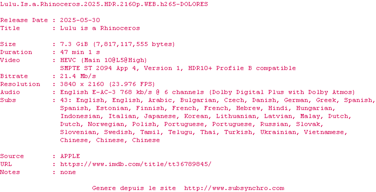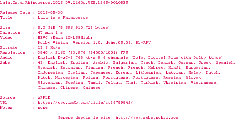Voir le nfo de la release Megamind.Vs.The.Doom.Syndicate.2024.DV.2160p.WEB.H265-DOLORES