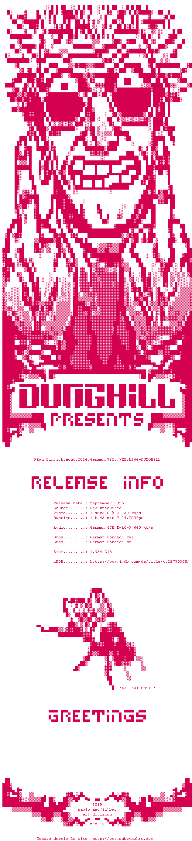 Voir le nfo de la release Pfau.Bin.Ich.Echt.2024.German.720p.WEB.H264-DUNGHiLL