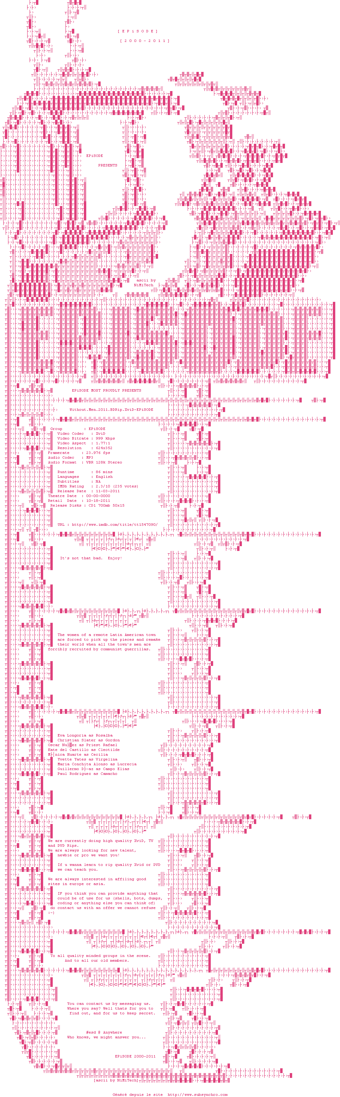 Voir le nfo de la release Without.Men.2011.BDRip.XviD-EPiSODE