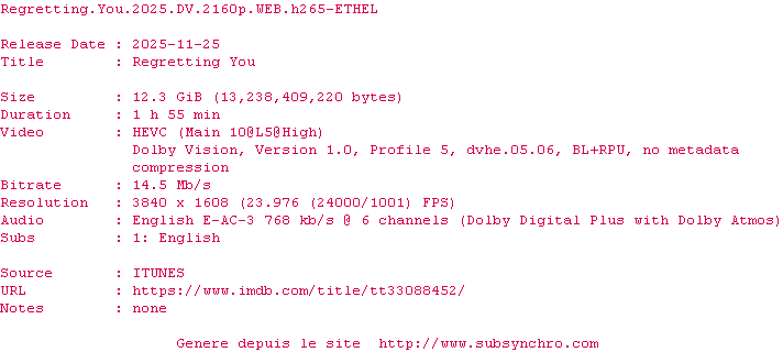 Voir le nfo de la release Stay.2025.DV.HDR.2160p.WEB.H265-ETHEL