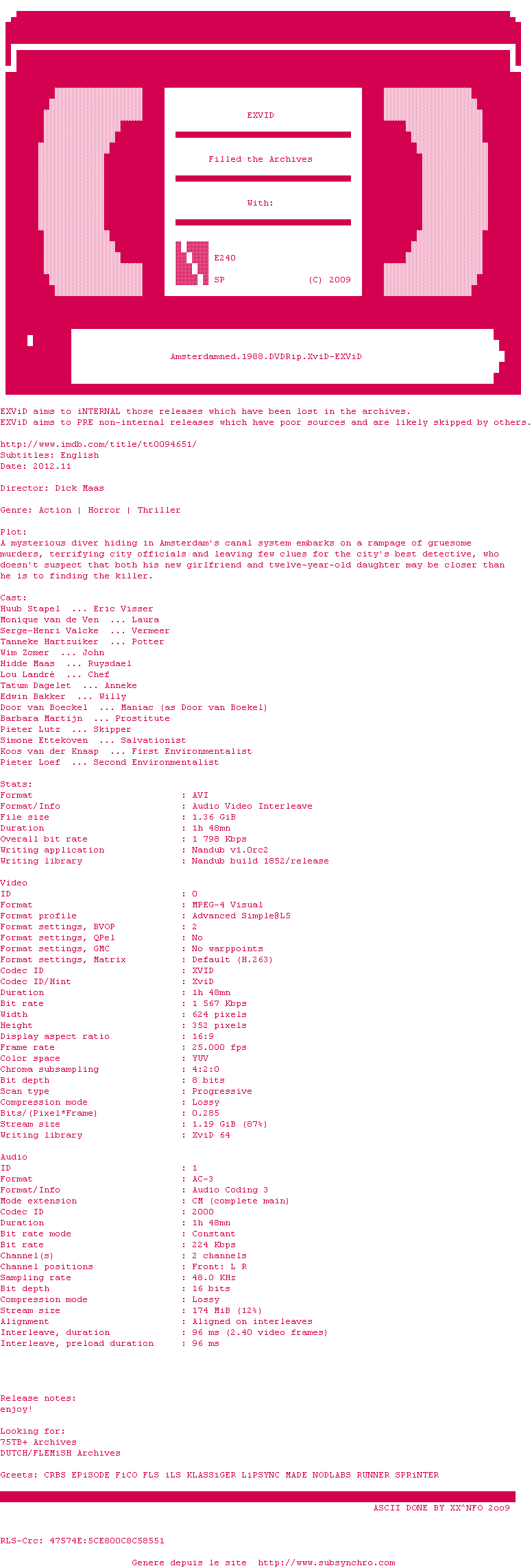 Voir le nfo de la release Amsterdamned.1988.DVDRip.XviD-EXViD