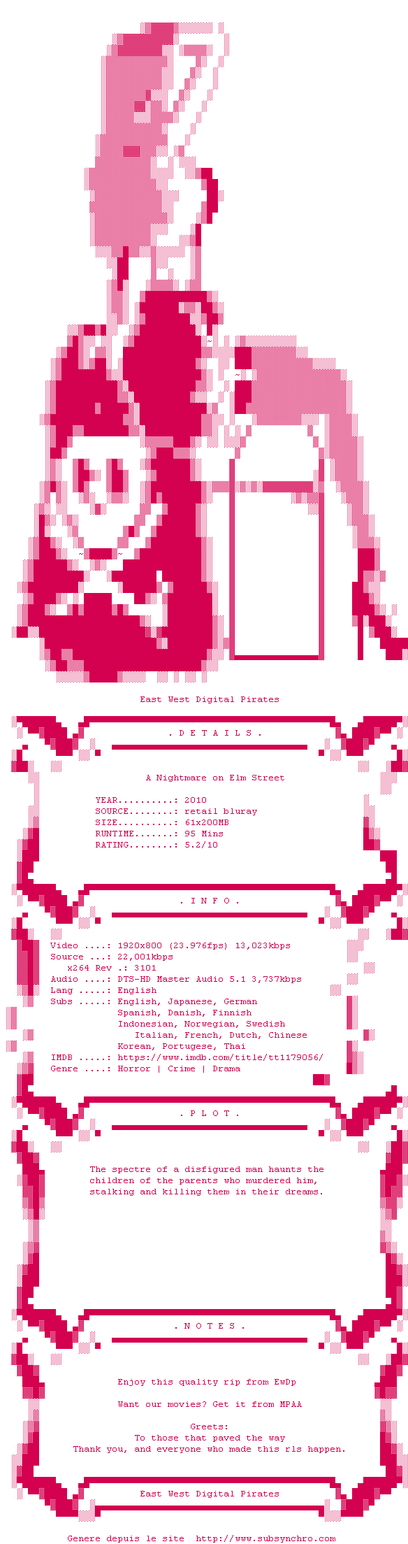 Voir le nfo de la release A.Nightmare.On.Elm.Street.2010.iNTERNAL.1080p.BluRay.x264-EwDp