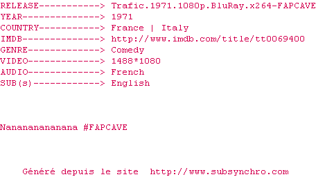 Voir le nfo de la release Trafic.1971.1080p.BluRay.x264-FAPCAVE