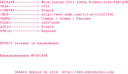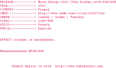 Voir le nfo de la release Mood.Indigo.2013.1080p.BluRay.x264-FAPCAVE