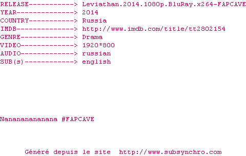Voir le nfo de la release Leviathan.2014.1080p.BluRay.x264-FAPCAVE