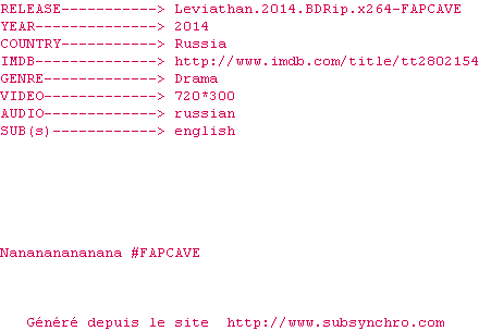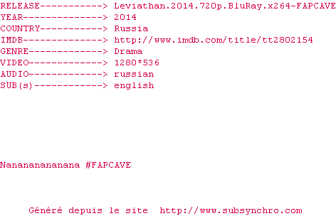 Voir le nfo de la release Leviathan.2014.720p.BluRay.x264-FAPCAVE