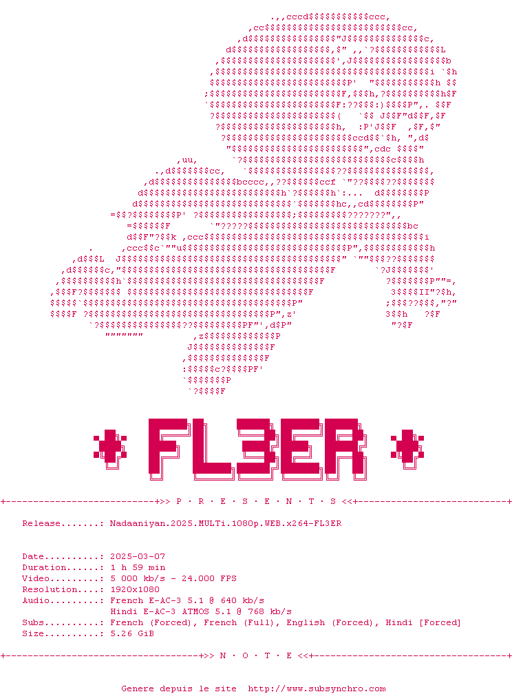 Voir le nfo de la release Nadaaniyan.2025.MULTi.1080p.WEB.x264-FL3ER