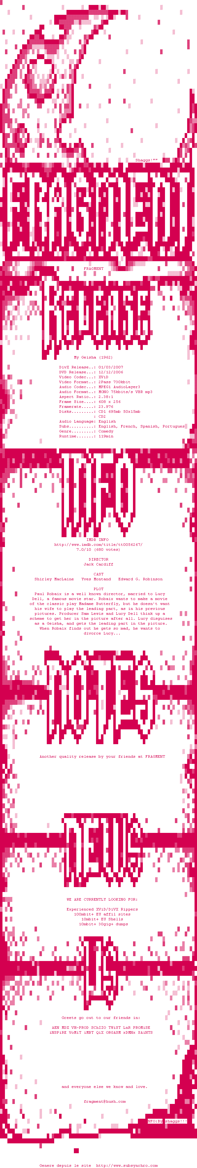 Voir le nfo de la release A.French.Gigolo.2008.DVDRip.XviD-FRAGMENT